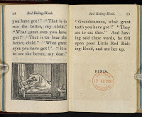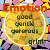 G for gentle, gallant, genuine, good-willed, generous, genius, good, good-natured, gorgeous, great, grand, and grateful, all that granny and the innocent child are, the positives. The wolf is ghastly, gloomy, gnarled, graved, groping, gruff, and guilty, the negatives, GRIM.
