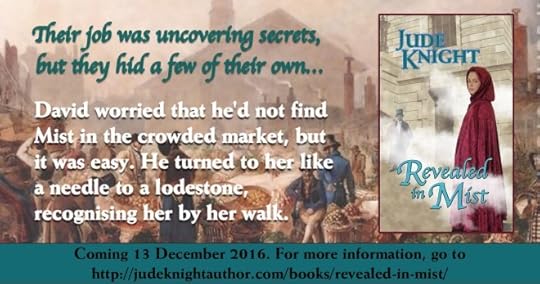 Revealed in Mist is released on iBooks, Barnes & Noble, Kobo, and Smashwords on 13 December. It’ll be coming on Amazon at around the same time — I’m putting the file up this evening or tomorrow evening New Zealand time, so it will be published as soon as it goes through their approval process. And it has been up on Amazon as a print book for over a week, since I wanted to order some books to come to New Zealand in time for an event in February, and the cheapest form of delivery takes a couple of months. I’ve even sold two print books! Woohoo!