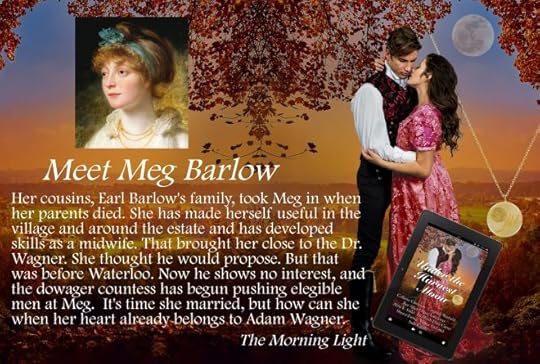 Meg lives on the charity of her cousin, Earl Barlow, and serves the community as a midwife. She doesn’t understand how Adam could turn his back on her so thoroughly, but she isn’t about to let him get away with it.