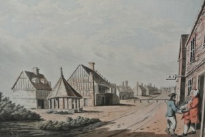 Many of the public buildings recall more populous times, not least the Norman church and the Tudor inn, The Queen’s Barque. Most of the cottages of the former town have tumbled to ruin, many now obliterated by the thrift of the surviving villagers, past and present, who have pressed their materials into use. The nucleus of the town comprises the church and its vicarage, the inn and two rows of cottages, one half-timbered with a slate/tile roof and one plastered with a thatched roof. One of the cottages has a general store on the ground floor.