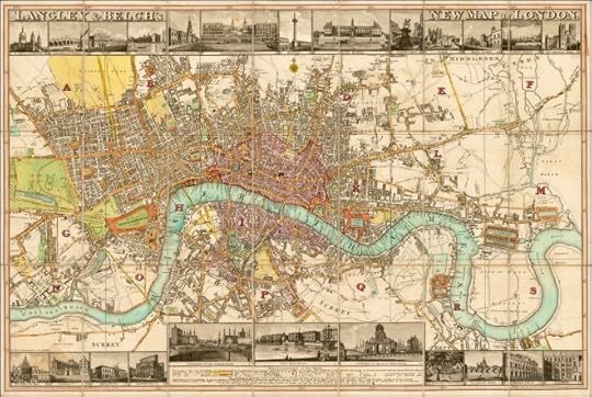 I set out to read about the slums of London in 1814, and found myself with two wonderful maps. The one above was produced in 1812, and shows the city a couple of years before my work-in-progress. Look at the parks and wide streets to the west of the ancient heart of the city. To the east we see industry and docks. That was the way the wind blew. Even when Shakespeare was alive, the city’s stink reached noses fifty miles away. It wasn’t any sweeter in Regency times, what with coal fires and the smell of a million people, all their associated animals, and the sewage they collectively produced. Of course the rich preferred to live to the West.