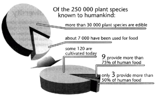 Life is rich, but we human beings have a habit of simplifying it to our own detriment. For example, there are thousands of edibles plant species in the world, and each of them comes in multiple types. We cultivate around 120 today. Three of those crops account for half of all food eaten on the planet.