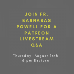 Join Father Barnabas for an exclusive livestream Q&A for Patreon supporters this Thursday, August 16th at 6 pm Eastern. Email your questions to email hidden; JavaScript is required and join our Patreon community here:
