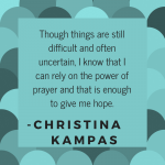 Today we welcome a guest contributor to the Faith Encouraged community, Christina Kampas. From time to time on the weekends, we will be featuring guest writers on the Faith Encouraged blog. May the God of hope fill you with joy and peace as you trust in Him. Romans 15:13 I am 25 years old and landed a corporate dream job, only to realize that months later my health would take a turn for…