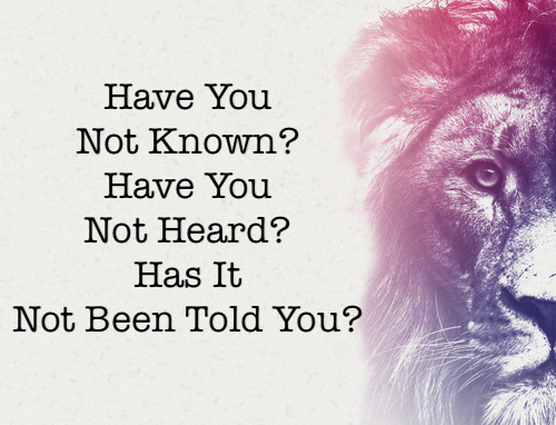 Have You Not Known? Have You Not Heard? Has It Not Been Told You?