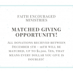 The post A Matching Gift Opportunity for End of the Year Campaign! appeared first on Faith Encouraged.
