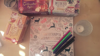 Zusätzlich habe ich eine Wand, auf dem einige Karten von Autoren kleben, schöne Postkarten hängen und auch mein NOVELIST AGREEMENT klebt, die ich immer anschauen kann, um mich zu motivieren. Ich füge in einem späteren Post mal ein Bild davon ein. Schreiben ist aber nicht alles und manchmal brauche ich auch meine Ruhephasen, um meine Batterien aufzuladen. Hierbei spanne ich gerne während des Malens aus. Auf der Buchmesse in Frankfurt habe ich mir dafür extra ein winterliches Malbuch gekauft. Normalerweise drucke ich mir sonst immer schöne Mandalas aus dem Internet aus. Beides hat seine Vorteile. (: Während des Malens, aber auch während des Schreibens verwöhne ich mich eigentlich immer mit einer schönen heißen Tasse Kaffee oder Tee. Das muss einfach sein und hält mich davon ab, zuuu viel Schokolade zu essen xD Kerzenlicht ist auch ein großes Muss und tut einiges für eine ruhige Atmosphäre, die mir beim Schreiben hilft.