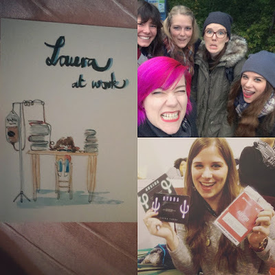 Es war zwar erst meine zweite Buchmesse, aber ich glaube, viel besser kann es gar nicht mehr werden :) Vor allem, weil ich auch endlich mal Juls (Julia Mayer) nach vielen, vielen Jahren der "Onlinefreundschaft" live kennenlernen durfte. Schon allein dafür hat sich der Trip dorthin gelohnt (: Aber auch der Rest der Buchmesse war super, am meisten habe ich mich in den Illumat verliebt, dessen Künstler mir drei tolle, witzige Bilder beschert hat.