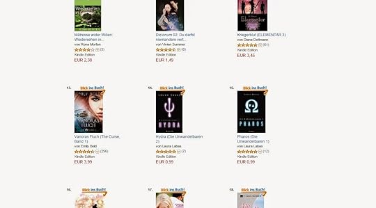 Geplant waren ursprünglich "nur" 28 Kapitel, aber ich bin jetzt schon bei 15, obwohl ich bei der Planung eigentlich nur bei 14 sein müsste, es kam jedoch noch einiges dazwischen, deshalb peile ich mal so 30-31 Kapitel und ca. 400 Seiten an. Das bedeutet, ich habe noch nicht einmal die Hälfte erreicht *wein* xD andererseits habe ich so noch viele spannende Szenen zum Schreiben vor mir. Yeah! Ich bin einfach noch immer so begeistert von dieser Reihe, wie am ersten Tag. Das ist total unglaublich und hätte ich selbst am wenigsten erwartet. :3 PHAROS habe ich übrigens noch einmal überarbeitet und gestern neu als eBook hochgeladen. Möchtet ihr die aktuelle Version lesen, habt aber schon die alte gekauft, dann könnt ihr mich gerne anschreiben und ich schicke euch die neue zu, ohne dass ihr den Preis zweimal bezahlen müsst! :3 Ich hatte eigentlich vor auch die Printversion zu aktualisieren, was ich vermutlich auch noch tun werde, aber erstmal zählt Arsida. Die Printversion wird ohnehin nicht so oft gekauft wie das eBook.Hier kommen wir zum zweiten Punkt: eBook und Amazon Ranking. Ich hatte ja schon einmal einen Post dazu geschrieben, weil es mich so begeistert und erstaunt hat, wie gut sich Teil 1 und 2 verkauft haben. Seit über einem Monat bin ich nun mit beiden Büchern (Pharos und Hydra) in den Top 100 Jugendbücher/Liebesromane und Jugendbücher/Fantasy vertreten, für ein paar Wochen war ich sogar in den Top 20. (whaaat?) Das ist wirklich unglaublich. :O Ich weiß, dass es nicht für immer so bleiben kann, also genieße ich den Moment und hoffe, dass den Lesern alles gefällt und sie sich auf Teil III freuen!Übrigens habe ich bei Hydra vor ein paar Tagen eine echt tolle Rezension erhalten, die mich so glücklich gemacht hat. Ich hab gar nicht damit gerechnet und schwubbs war sie da. Hier mal ein Auszug (wenn hier auf den Link klickt, kommt ihr direkt zur Rezension von Katherine Mattingley-Scott):