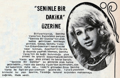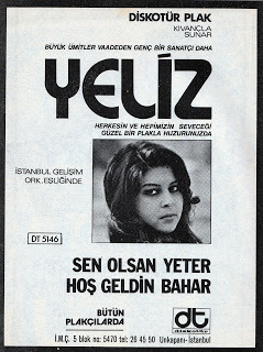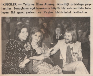 Yeliz'in 1974 yılında yayımlanan ilk 45'liğinin ilanı.Tam bu noktada hemen bir söylenti yayılacak, finale kalan şarkıcılardan beş tanesinin birden (Yeliz, Yeşim, Cahit Oben, Serter Bağcan, Atilla Atasoy) o günlerde genç seslere ve bestecilere fırsat tanıyan Diskotür Plak firmasına bağlı isimler olması dikkate değer bulunacaktı.