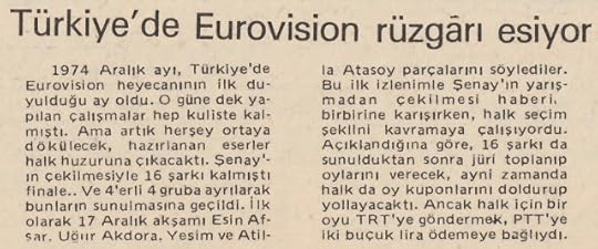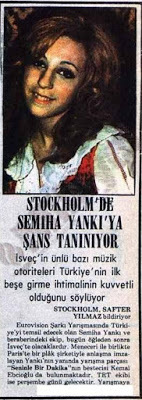 1975 yılı Eurovision Şarkı Yarışması’na Türkiye’nin de katılacağı haberi 1974 yılı temmuz ayında kesinleşti. Müzik çevrelerinde kulaktan kulağa yayılan söylenti nihayet anonslarla duyurulmaya başlanmış, şartname açığa çıkmıştı.