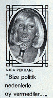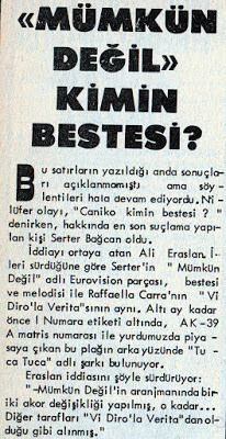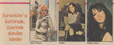 Aynı günlerde ortaya çıkan bir başka söylenti ise TRT’nin o yıl yarışmada Türkiye’yi temsil etmesi için Ajda Pekkan ismi üzerinde durduğu yolunda idi. Böylece sadece şarkı seçimi yapılacaktı. Şayet Ajda Pekkan ile anlaşılamaz ise Nilüfer ve Nükhet Duru diğer seçeneklerdi.