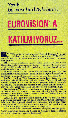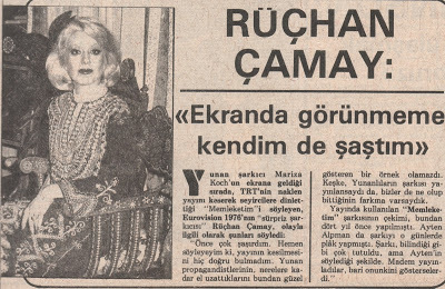 O yıl yarışmaya sadece seyirci kalmasına rağmen Türkiye, Avrupa basınının yarışma sonrası gündeminde bambaşka bir şekilde yer alacaktı. Final gecesi yapılan canlı yayında sıra Yunanistan’a geldiğinde TRT ekranında bir anda dönemin popüler şarkıcılarından Rüçhan Çamay belirmişti.