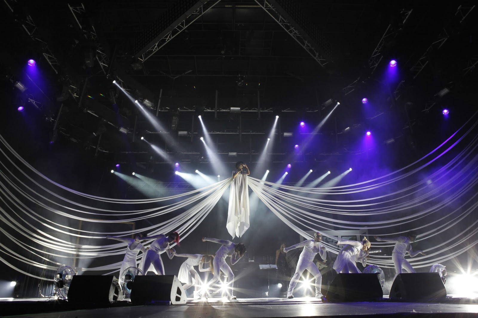 Bu kusur konseri çok aksattı bence. Yoksa tek tek düşünüldüğünde tablolar, koreografiler, şovlar, görsel zenginlik yerli yerindeydi. Mesela konsere havada başladı Hande. Bayağı yerden birkaç metre yüksekte, beyaz kostümüne bağlı kanatlar sahnenin iki yanına doğru uzarken, havada öylece duran ve şarkının bir kısmını bize tepeden bakarak söyleyen bir Hande görüntüsü açılış için yeterince çarpıcıydı.