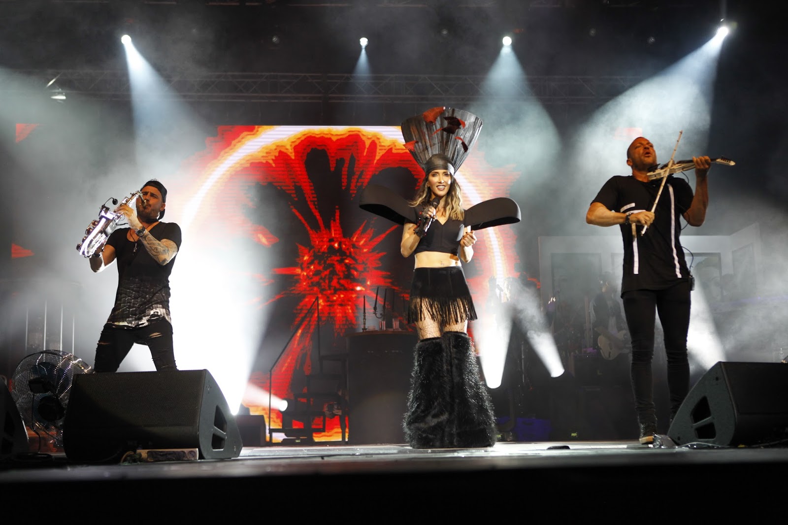 “Dünyanın 3 ayrı köşesinden gelen 3 ayrı müzisyenden oluşan dünyaca ünlü grup M3 Show Live grubu” yani Micah, Ruben Moran ve Leon, ışıklı saksafon, keman ve gitarlarıyla Hande’ye eşlik etmeye üzere sahneye çıktılar ve Hande “Aşkın Ateşi” ve “Kibir”le devam etti konsere.