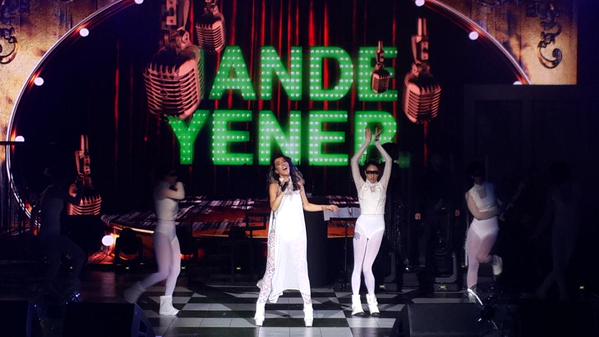 Neyse… Tuna (Grup Seksendört’ü temsilen) ve Hande “Rüya” yı bir şekilde söylediler. Bu şarkı için yine kostüm değiştirmiş ve kafasına bir de siyah taç kondurmuştu Hande Yener. Kafasında o taç durduğu sürece, “Kraliçe” şarkısı ha geldi ha gelecek diye bekledim, ne yalan söyleyeyim. Gelmedi neyse ki. “Hasta” geldi ama. “Hasta” söylenirken ateş dansçıları eşlik etti Hande’ye. Hah dedim şimdi bir kıvılcım tutuşturacak kadının saçını; tam da ortasında duruyor iki dansçının. Saç neyse de, taç yanarsa fena; hanedanın karizması gitti gider. Bereket yanan eden olmadan bitti şarkı.