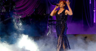 Konserin ilk yarısını sahne ışıklarında mora çalan ama sahnenin her iki yanındaki “led” ekranlarda basbayağı mavi görünen ışıltılı bir kostümle geçirdi Candan Erçetin. 12 kişilik orkestrası kelimenin tam anlamıyla “zımba” gibiydi ve bir an bile teklemedi, aksamadı, gümbür gümbür başladı, öyle de bitirdi. Konserin sonuna doğru öğrendik ki Candan Erçetin zaten yirmi yıldır aynı orkestra ile çalışır imiş. Bu uyumun, bu “plak gibi” çalışın açıklaması da buymuş meğer.