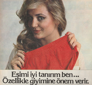 Ses dergisinin sayfaları arasında kalmış bu fotoğraflar, bir iç çamaşır markasının reklamları için çekilmiş. Banu Alkan, reklam gereği “eşine ait” kırmızı bir erkek donuyla objektife çapkınca gülümsüyor. Diğer fotoğrafta ise bu defa aynı markanın geceliği ile yine şuh bir poz vermiş. “Afrodit”in bir ev hanımı olduğuna inanıp inanmamaksa size kalmış.