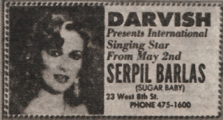 Haberi süsleyen fotoğraflardan biri ise Serpil Barlas’ın Amerika’da sahneye çıktığı kulübün ilanı. Serpil Barlas, isminin İngilizce telaffuzu zor olduğundan olsa gerek, kendisine “Sugar Baby (Şeker Bebek)” lakabını uygun görmüş. Bunu da ilandan öğreniyoruz.