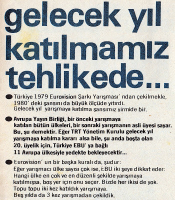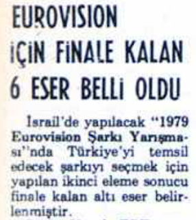 Nitekim o günlerde TRT koridorlarında dolaşan söylentiler de pek iç açıcı değildi. Cumhuriyet gazetesi 1 Ocak 1979 tarihli sayısında bu söylentileri “Eurovision’a Katılmayabiliriz” başlıklı haberinde şöyle aktarıyordu: