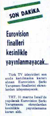 Takvimler 5 Mart Pazartesi gününü gösteriyordu. Herkesi şaşkına çeviren haber, 17:00 haber bülteninde ilk kez radyodan yayınlandı. Türkiye, Eurovision Şarkı Yarışması’ndan çekilmişti.