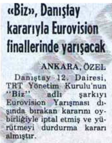 Kurulda Özsan’la aynı fikirde olmayan üyeler de sesini yükseltince bir buçuk saat süren tartışmalara son noktayı TRT Genel Müdürü Cengiz Taşer koyacaktı: “Biz bu parçayı reddedersek, geçen yılki ‘İnsanız Biz’ adlı parça gibi Danıştay’dan geri döner. Buna meydan vermemek gerekir.”