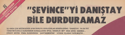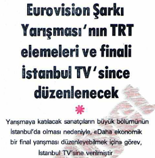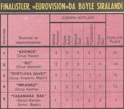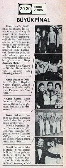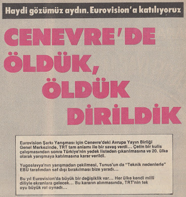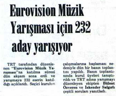 Bu derece önemsediğimiz, hayatlarımızda yer verdiğimiz televizyon, zaten enerji tasarrufu nedeniyle günde 4 saate düşürülmüş yayını esnasında müziğe, hele ki popüler müziğe o kadar az veriyordu ki, Eurovision Şarkı Yarışması, ülkedeki birçok pop müzik meraklısı için adeta bir şenlikti. Nitekim şimdi herkes 16 Aralık gecesi ekrana gelecek finalist şarkıları bekliyordu heyecanla.