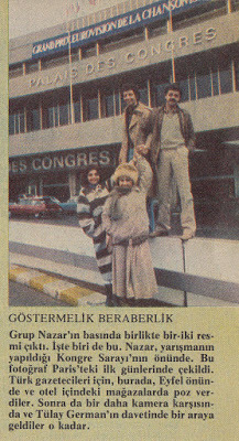 Henüz çok genç olmasına rağmen büyük bir yıldız olma yolunda hızla ilerleyen Nilüfer ise, besteci Dağhan Baydur’un teklifiyle Grup Nazar ekibine son anda dâhil olmuştu. Grup Nazar, adını henüz kimsenin duymadığı ancak sonraki yıllarda özellikle Eurovision sayesinde sıklıkla duyacağı Olcayto Ahmet Tuğsuz’un yanı sıra Zeynep Tuğsuz ve Dağhan Baydur’dan oluşuyordu. 1975’de başına gelenlerden sonra bir daha yarışmaya katılmayı düşünmeyen Nilüfer, şarkıyı çok beğendiği için bu kararından caymış ve ilk elemeyi geçerek yarışmanın iddialı finalistlerden biri olmuştu.