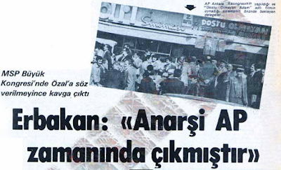 15 Ekim’de Necmettin Erbakan, Milli Selamet Partisi’nin Büyük Kongre’sinde yaptığı konuşmada “Anarşi Adalet Partisi zamanında çıkmıştır,” diyerek yakın zamana kadar hükümet ortağı olduğu Demirel’e yüklenecek ve sözlerini şöyle sürdürecekti: “Bre renksiz, bre liberal Demirel, bu komünistleri sen yetiştirdin, onlara sen bahçıvanlık ettin.”