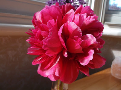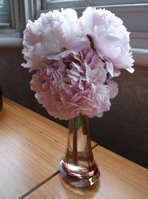 But as I walked down the garden, I could see the sadness long before I reached it. The pink peony had finally opened and the huge flowers had been beaten to the ground by the rain. Some of the blooms were mud splashed, so I rescued them and brought them indoors for a quick rinse under the tap. They never last long, but their display is glorious, so hopefully we can enjoy them for a while longer, despite nature's attempt to destroy them.