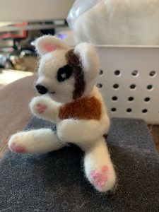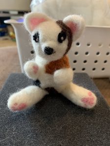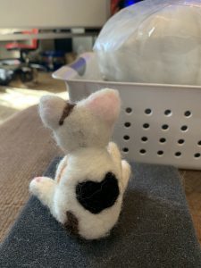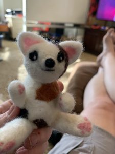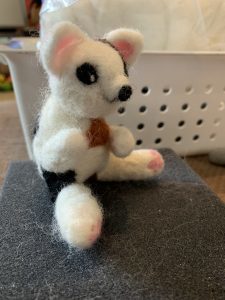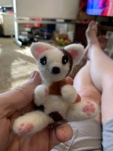 I decided I wanted to learn to needle felt. I order some supplies and watched a video on how to make a ball and jumped in. I didn’t bother with a pattern, but the kit came with instructions that I was a little bit too impatient to read and skimmed a bit and decided to just jump in. I think I did all right, but I definitely want to look into how to do a few things better. Paws are one thing. And shaping smaller stuff like facial features. But I thought I’d share the result. It’s kind of cute, right?