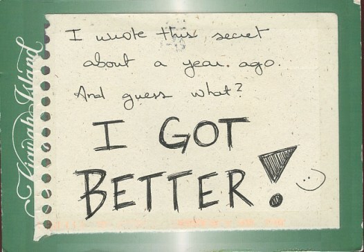 I sent you this secret some time later in my college days. Then I sent you an update after a few years later as well – which is when I think my secret debuted on Sunday Secrets. I didn’t screenshot or save it. If you have a copy of that, that would be cool.