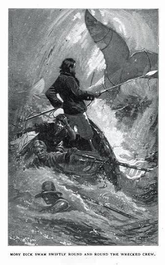A sea captain forces his crew to search for an elusive white whale. (Moby Dick)