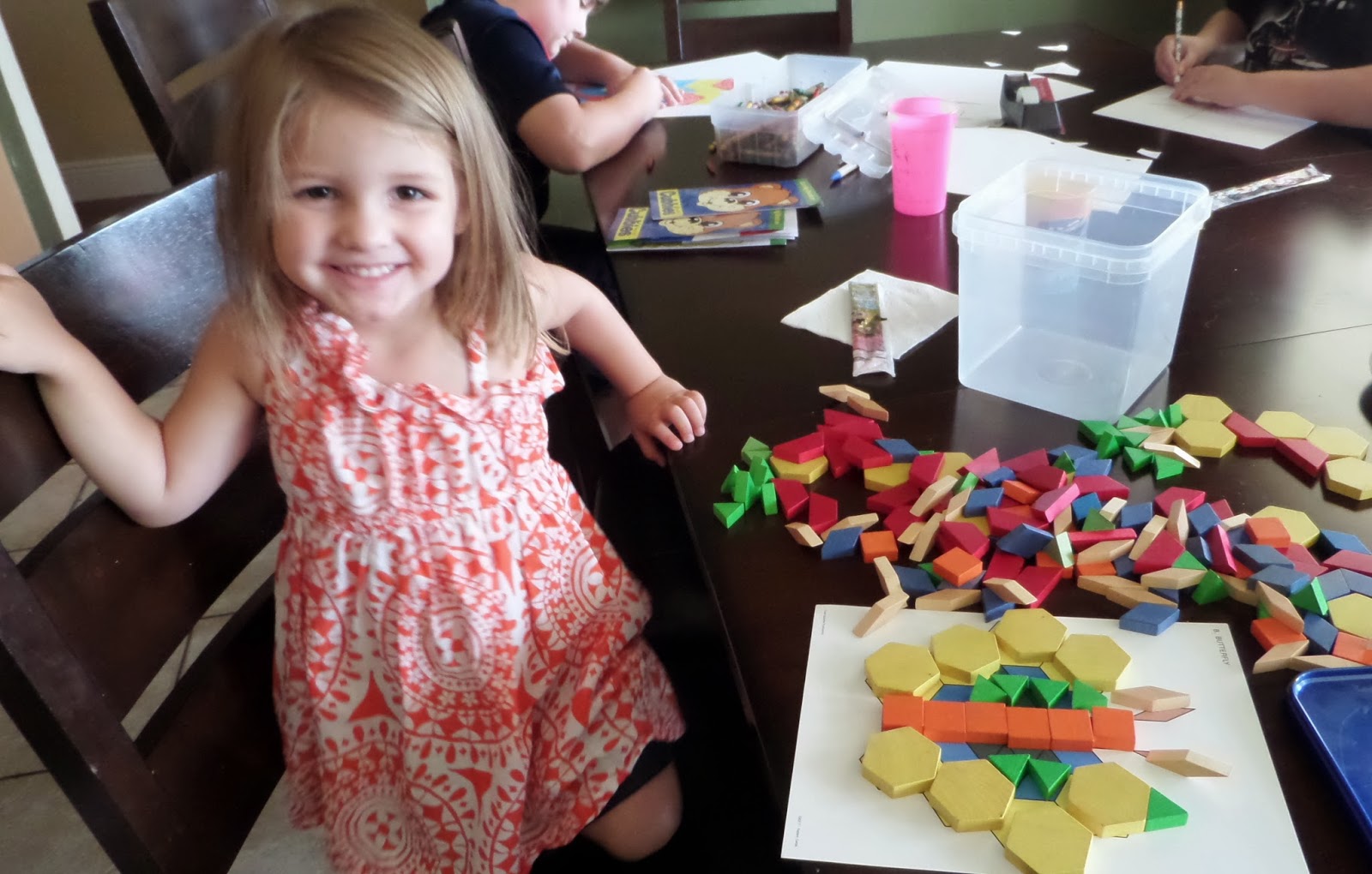 My little ones joined in on the fun and made designs with their pattern blocks. I cherish these times that we are all learning together, just on different levels.