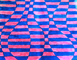 I like this geometry art project because it looks like an optical illusion. Using a ruler, I have my kids draw lines from left to right the same distance apart and then make straight or wavy lines going up and down. Next, they alternate two colors on every section going from side to side. (Markers look the best.)