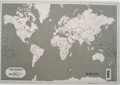 I purchased some placemats from like this one for a couple of dollars. I prefer using placemats over standard maps because they last for years without getting wrinkled or torn.