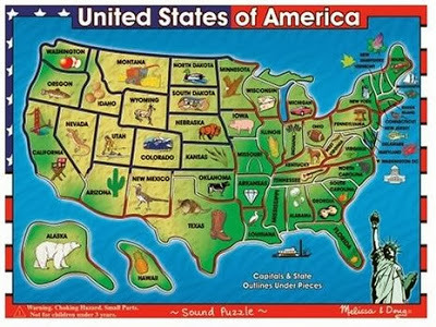 Call me old-fashioned but I still like to use puzzles for teaching. Children have no idea they are learning and memorizing locations when you use puzzles for geography. My sister, Haleigh, gave this puzzle to my son for a birthday present, and it is a gift that has been used a whole lot.