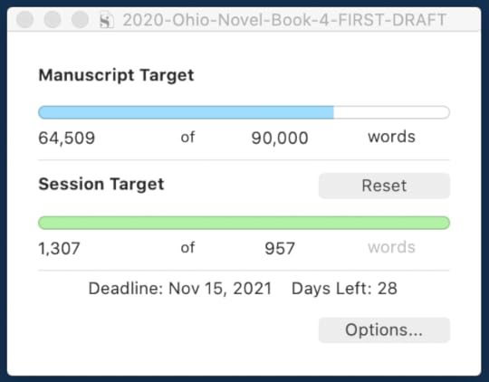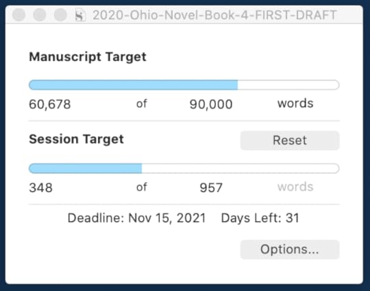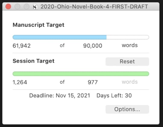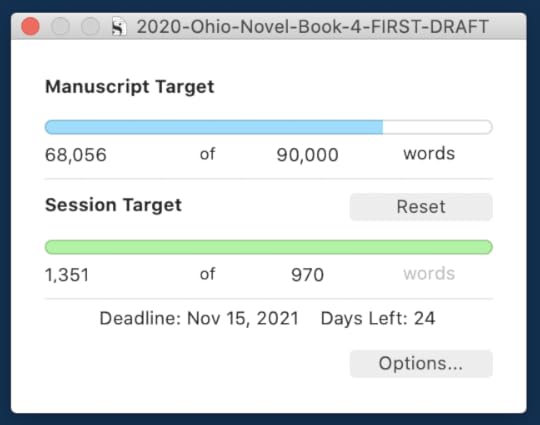 And I got 1351 words, and am now at 68,056 — and the villains in town have just done something really interesting, and my MC just got to see the first tip of a brand new iceberg…