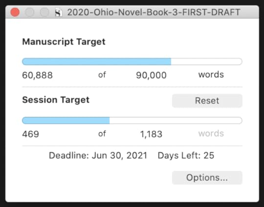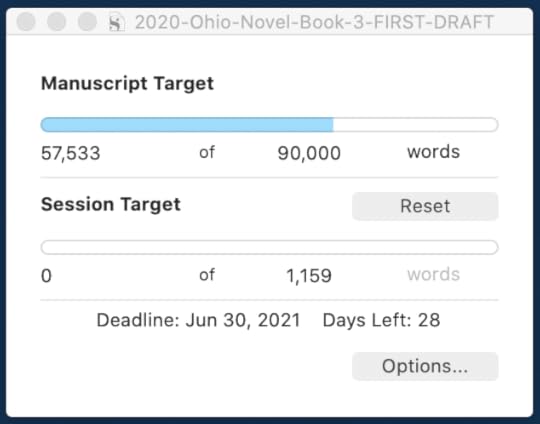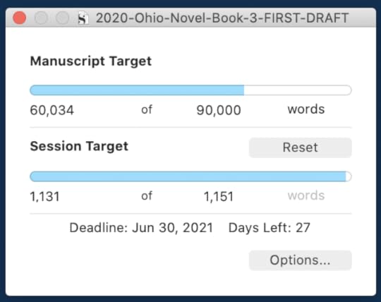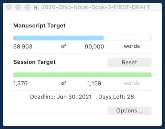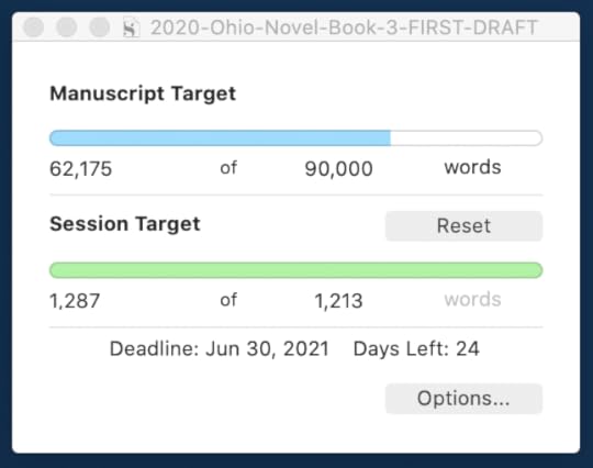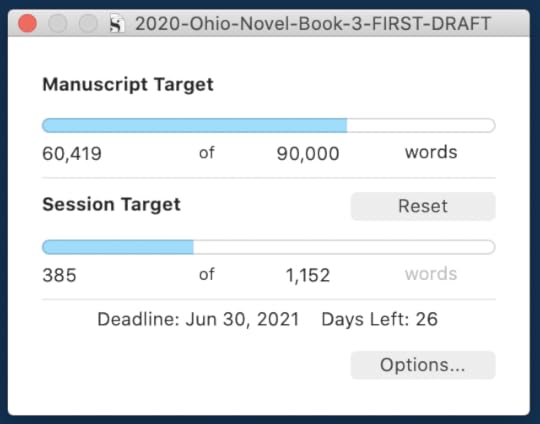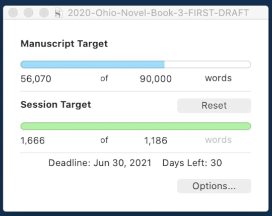 Nevertheless, as I read through yesterday’s work to catch up with where I was starting today, the Ohio 3 story caught me, and dragged me into it, and when I looked up, I’d run over on my wordcount, and had written words that work, and now I have a great new conflict waiting to show up in tomorrow’s words.