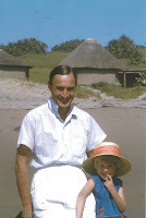 My first memories are of Africa, which is perhaps why I ended up with incurably itchy feet. This is me simpering with my father at Qolora Mouth in South Africa in 1964.