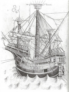 Anyway, it's done, so I'll see the results next week In the meantime, I have done my talk on medieval shipping in the wonderful 14th-century Merchant Adventurers' Hall here in York, so that's another job off my list.Funnily enough, one of the characters in my next time slip is going to be getting on a ship so on this occasion I got to combine promotion with research. For all those of you wishing you could have been there to find out ALL about medieval shipping (and I know there must be hundreds of you out there, even though not a single one of you sent me a picture of a keelboat as I asked so nicely), here's a picture of a 15th-century hulk or carrack. It's absolutely amazing where these ships got to, mostly without charts or compasses, not to mention watertight decks.