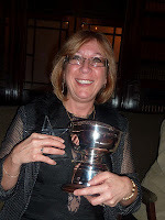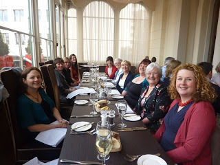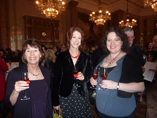 No rose bowl for me this year; the RoNA Rose award went to Sarah Mallory for her wonderful historical, The Dangerous Lord Darrington, so huge congratulations to her. Sarah was sitting on our table, so at least we were all able to bask in her reflected glow!I always think I'm not going to know anyone at these events, but there were lots of familiar faces to kiss – here's Jennifer Taylor, with Julie Cohen and Fiona Harper, for instance – and I got to mwah-mwah with the best of them before heading off for cocktails over the road to top off a glamorous day in suitable style.