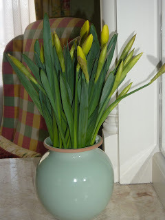 Anyway, it is done. I finished at 11.30 last night, and after a few last minute tweaks (more frantic scribbling in notebook after I went to bed) I pressed SEND and collapsed over my keyboard. Then I went out and had my nails done and bought myself some daffodils, and swore that in my next life I'm going to have a nice, steady office job and never even think about writing a book. (That's the next life where I'm going to be rangy and curly-haired with skin like a peach and a silvery laugh, by the way … I'm going to be sooooo cool!)