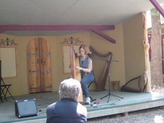 We sat for a while at the harp stage, before being driven off by bees. (I'm not kidding.) She was playing songs written by Turlough O'Carolan and telling us a bit about his history. She also pointed out the two natural enemies of harpists at Celtic Music Festivals: bag pipers warming up, and the blacksmith, who working on something and the hammer hitting the metal was like a metronome that was just slightly off.