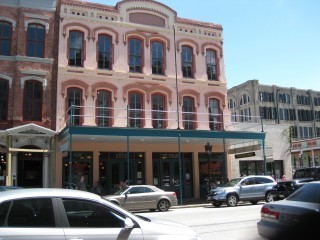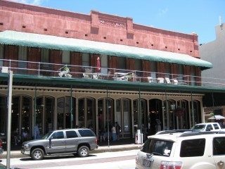 Then we went to The Strand, which was the sort of main street, financial center of the town before the 1900 hurricane. Now a lot of the Victorian buildings have been restored and are all restaurants and shops. (And there's the Moody Building at the far end, which is in a gorgeous white Art Deco style, which is still an office building.) (On one of my earlier trips, I posted a picture of the hurricane Ike high water line, which would have been two feet over my head, even standing on the sidewalks which are two feet or so above street level.) We shopped a lot.