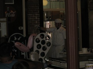 We also stopped at LaKings Confectionery, which is an old fashioned candy factory and soda fountain (and a new fashioned coffee bar) and I had a chocolate soda. I wish I had taken a picture, because it looked as good as it tasted. (When they put it on the counter, a small crowd gathered behind me wanting to know what it was.) Every place else I've ordered chocolate soda, it's been made wrong. (Places seem to put it on their menus but don't know how to make it. The most common way I've had it made wrong is that they mix the chocolate ice cream with the soda, which gives you a glass of mush. You're supposed to mix chocolate syrup with the soda, then float the scoops of either chocolate or vanilla ice cream on top. If a place doesn't ask you if you want chocolate or vanilla ice cream when you order a chocolate soda, it usually means they're about to make it wrong.) Anyway, they used a very dark chocolate, and it was incredible.