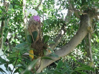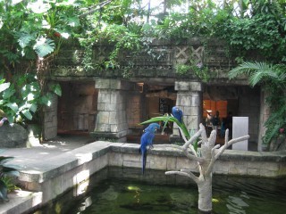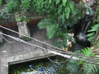 These next pictures are all from the Moody Gardens Rainforest exhibit, in the glass pyramid, which was rebuilt after hurricane Ike. It's a lot bigger now, with two levels so they can demonstrate the difference between the canopy and the forest floor. You can't tell from these pictures, but it's full of birds and fish and turtles, plus sections for butterflies and bats.