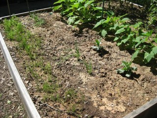 That's tomatoes, squash, okra, eggplant, spinach, shallots, and carrots.