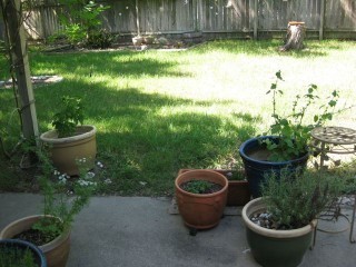 Herb pots. That should be rosemary, oregano, basil, and cilantro.