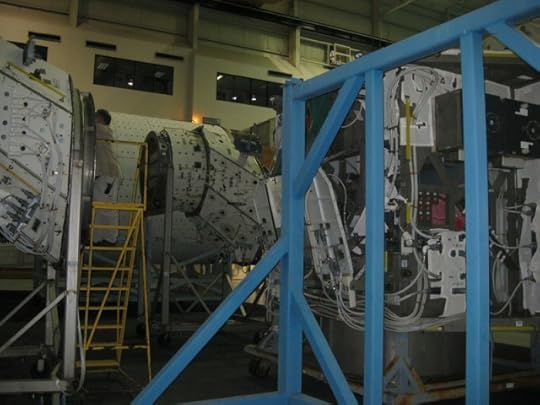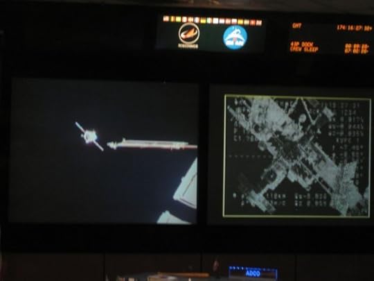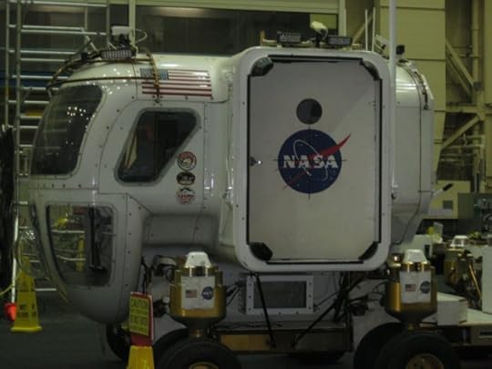 As guest of honor at ApolloCon, I got to go on an all day VIP tour of NASA with my husband and editor goh Ann VandeMeer. It was incredible. We saw stardust in a lab. We saw an unmanned Russian supply ship dock with the international space station from Mission Control. We saw meteors recovered from Antarctica that came from asteroids, the moon, and Mars. We saw lunar rocks. We climbed in and out of the space shuttle simulator and I got to sit in the commander's seat. We saw them putting a module down in the giant (and I mean giant) water tank in the Neutral Buoyancy Lab. I really can't describe how awesome all this was.